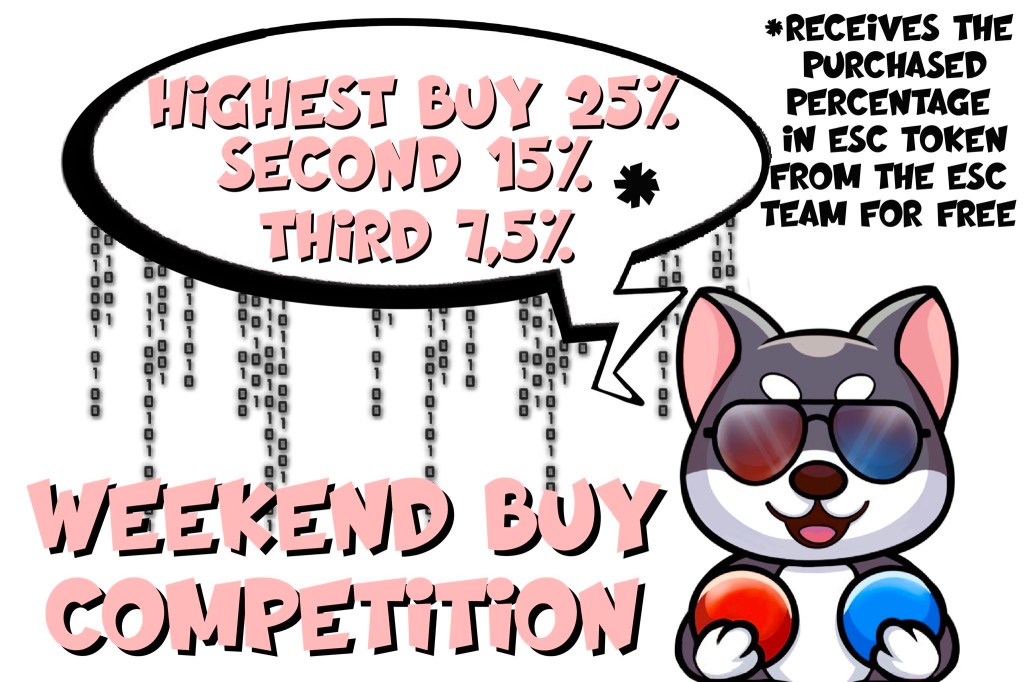 - Weekend Buy Competition: The ESC team announces a buy competition where the three largest purchases of ESC tokens will receive percentages of their purchase value for free. The competition ends on Monday evening.