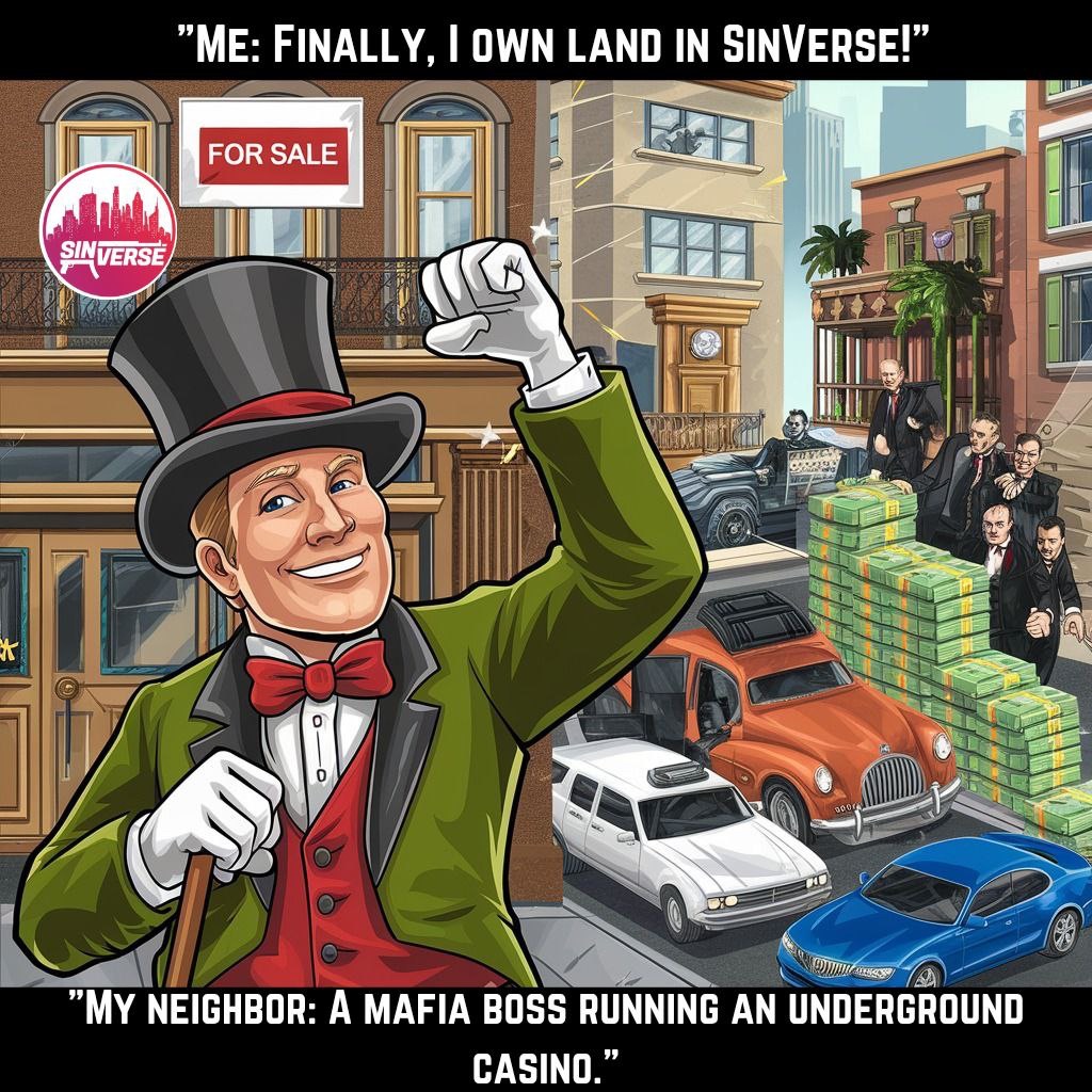 SinVerse is structured around 17 virtual districts, each modeled after real-world locations such as Las Vegas and Rio de Janeiro. Players can own land, join factions, and engage in a player-driven economy.