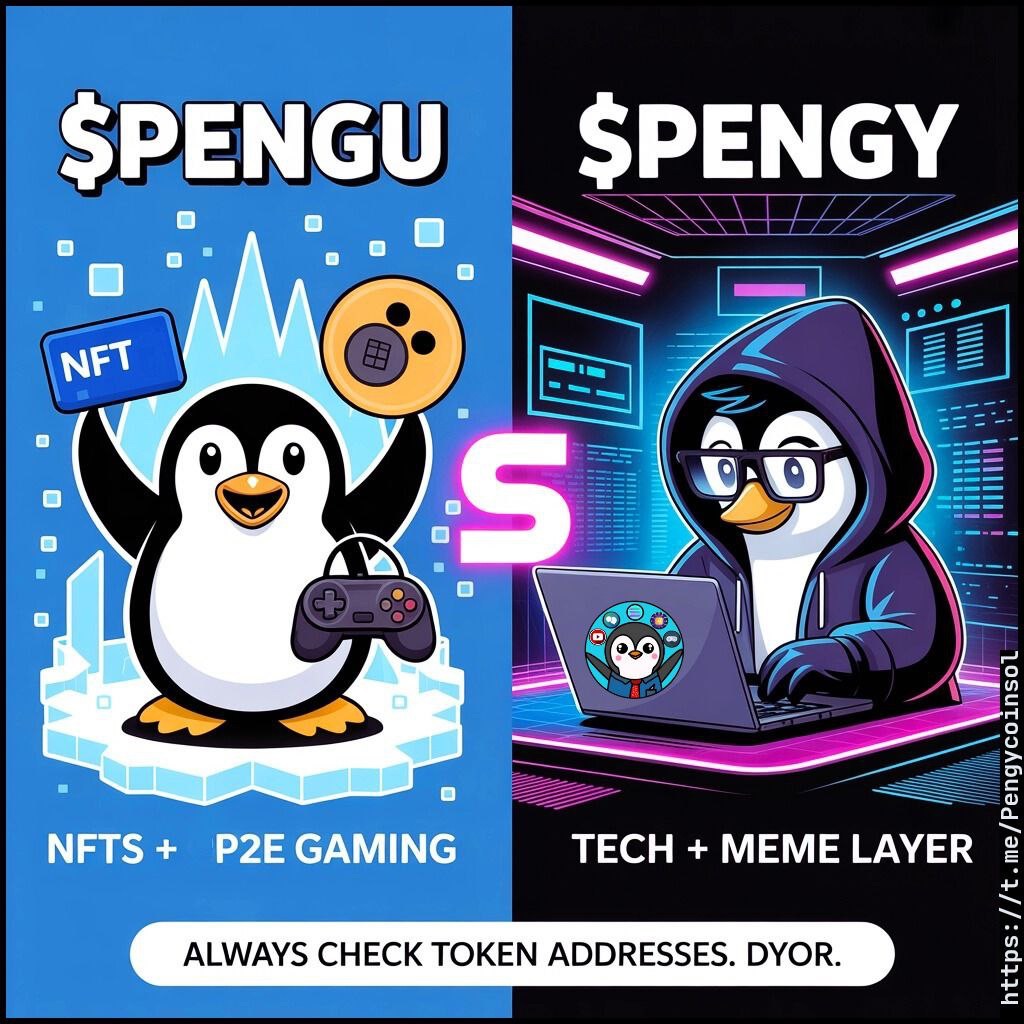 Before aping in, note that $PENGY ≠ $PENGU. Both are Solana meme tokens, but $PENGU is tied to NFTs and a play-to-earn game. $PENGY is more of a platform project with a tech layer and a meme face.