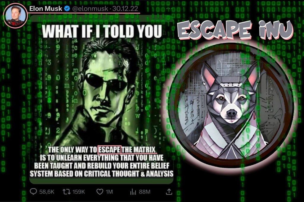 In conclusion, $ESC, the Escape Inu, is on a mission to become the next big memecoin. With its passionate community, focus on gaming, experienced team, and the allure of potential gains, $ESC has the ingredients for success. As always, do your due diligence, stay informed, and join the journey of escaping the matrix with $ESC.