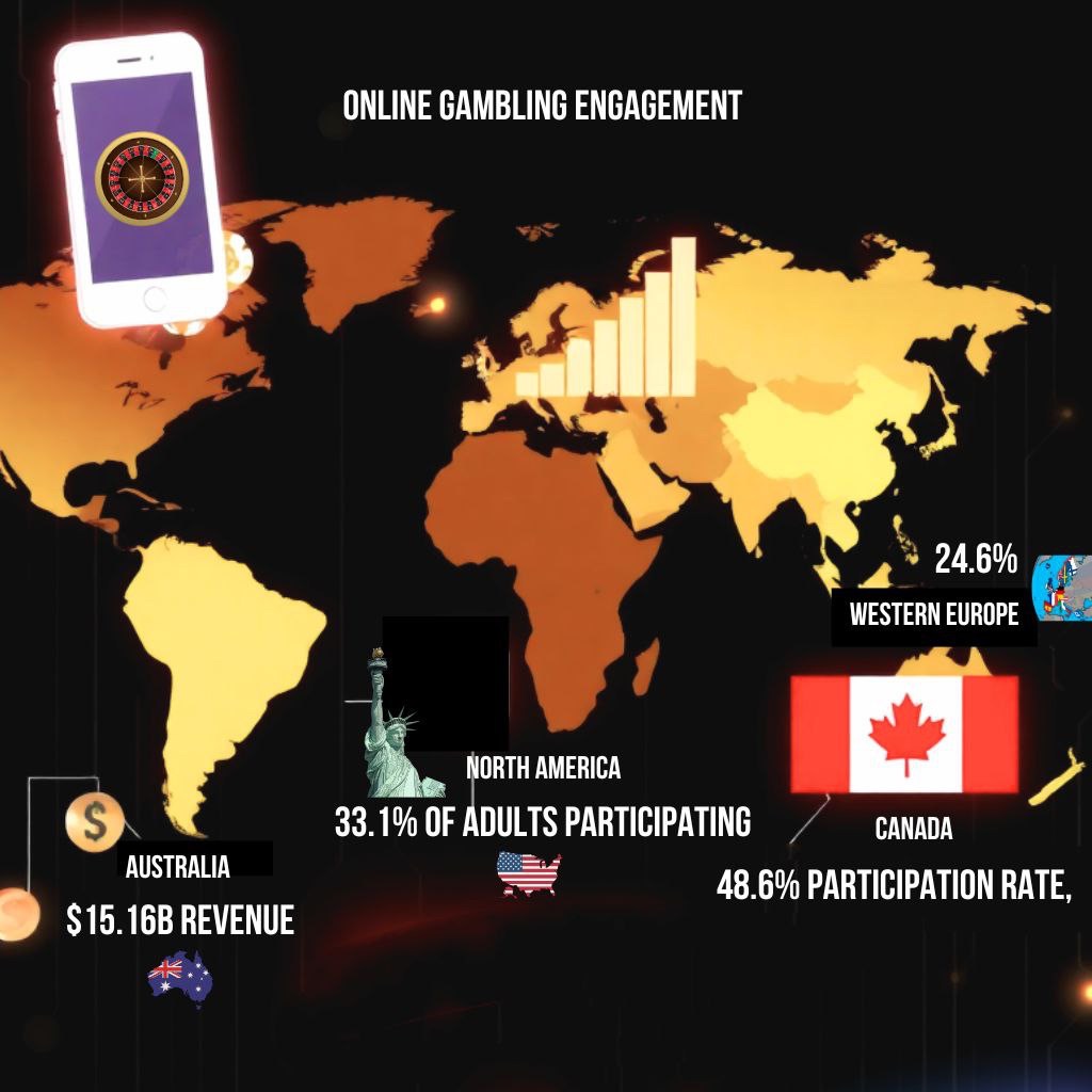 North America leads with 33.1% of adults participating in online gambling. Western Europe follows at 24.6%, driven by robust regulation and accessibility. Australia ranks third by revenue, projected to hit $15.16 billion in 2024, despite its smaller population. Canada boasts the highest individual participation rate, with 48.6% of adults expected to gamble online in 2024.